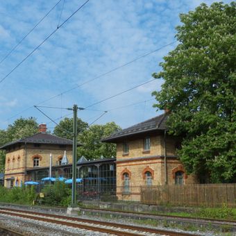 Baudenkmal D-1-84-139-24 in Pullach im Isartal im Ortsteil Pullach i.Isartal, Bahnhof Großhesselohe der Isartalbahn, zwei unterschiedlich große Pavillons mit eingespanntem erdgeschossigem Bahnsteigtrakt, roter und gelber Backstein, 1891.
