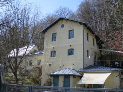 Baudenkmal D-1-84-139-17 in Pullach im Isartal im Ortsteil Pullach i.Isartal, Ehem. Brunnwärterhaus, erdgeschossiger Putzbau auf hohem Sockelgeschoss mit Flachsatteldach, dendro.dat. 1763, verändert 1894.