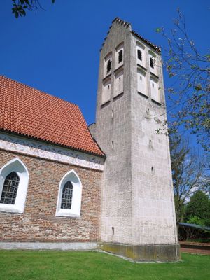 Baudenkmal D-1-78-144-25 in Nandlstadt im Ortsteil Airischwand, kath. Filialkirche St. Silvester, spätgotischer Backsteinbau, Saalkirche mit eingezogenem Polygonalchor, Flankenturm verputzt mit gemalter Quaderung, Ende 15. Jh., mit Ausstattung