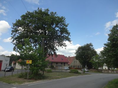Naturdenkmal Bismarck-Eiche W Kirchhof; Flur 4, Flurstück 11 in Merzdorf, Naturdenkmal in Merzdorf (Baruth/Mark), Brandenburg