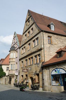 Baudenkmal D-4-62-000-144 in Bayreuth, Ehem. Burggut der Herren von Nankenreuth, dreigeschossiger, giebelständiger Sandsteinquaderbau mit rustiziertem Portal und Satteldach, 1576.