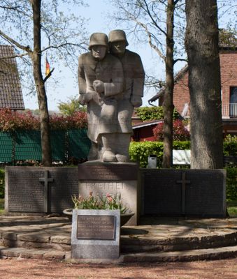 Das Ehrenmal steht im Zentrum von Lippramsdorf, einem Stadtteil von Haltern am See in Nordrhein-Westfalen, und bietet Raum zur Besinnung.
