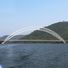 Die Brücke verwendet ein hybrides Aufhängungssystem mit vertikalen Kabeln, die die Fahrbahn mit dem Hauptbogen verbinden.