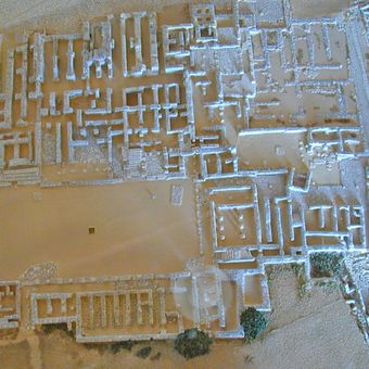 Die archäologischen Überreste enthalten einen minoischen Palastkomplex mit Lagerräumen, Werkstätten, Wohnbereichen und architektonischen Elementen aus dem Jahr 1900 v. Chr.