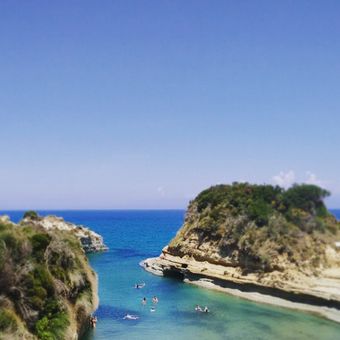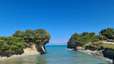 Der Canal d'Amour ist eine Strandbucht in Sidari mit sandigen Bereichen und natürlichen Kalksteinfelsen, die Tunnel und kleine Buchten bilden. Das Wasser ist flach und klar genug zum Schwimmen, und die geologischen Formationen schaffen verschiedene Ecken zum Erkunden.