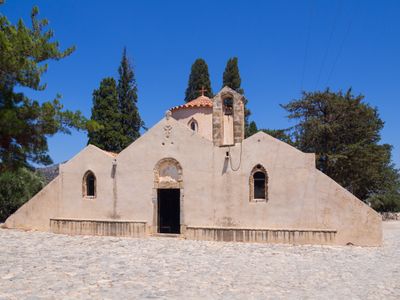 Die Kirche liegt einen Kilometer südlich des Dorfes Kritsa und bietet Parkplätze gegenüber dem Restaurant Paradise für bequemen Zugang.