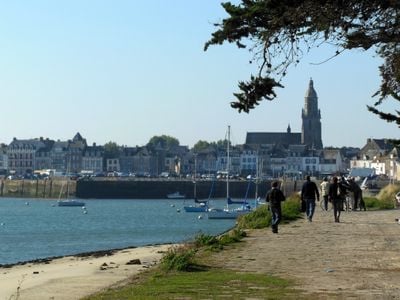 Le Croisic ist eine Hafenstadt auf einer Granitisel an der Atlantikküste, die durch einen schmalen Landstreifen mit dem Nachbarort verbunden ist. Die Landschaft wird durch Strände und Felsenküsten geprägt, die sich entlang der zerklüfteten Küstenlinie erstrecken.
