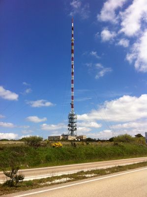 Der 1961 errichtete Turm wurde 1975 nach einem Angriff, der die Fernseh- und Radiosendungen unterbrach, vollständig wiederaufgebaut.