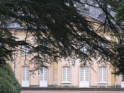 Die Schlossanlage umfasst ein markantes Wasserelement und Innenräume im Stil Neo-Louis XVI mit Nebengebäuden.