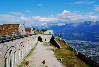Die Festung Saint-Eynard steht auf 1338 Metern Höhe mit Steinmauern über dem Belledonne-Massiv und dem Grésivaudan-Tal.