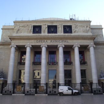 Das Opernhaus überstand 1919 einen Großbrand, der nur das Peristyl und die Kolonnade verschonte, was zum kompletten Innenumbau führte.