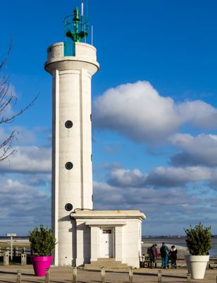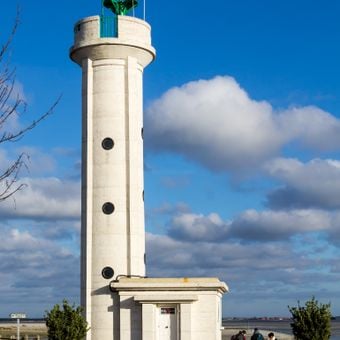 Der zylindrische Turm erhebt sich 18 Meter hoch im südlichen Teil der Somme-Bucht und sendet alle 12 Sekunden weiße und grüne Lichter aus.