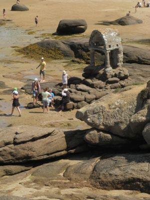 Die ursprüngliche Holzstatue aus dem 14. Jahrhundert wurde 1904 in die nahegelegene Saint-Guirec-Kapelle verlegt und durch eine Granitskulptur ersetzt.