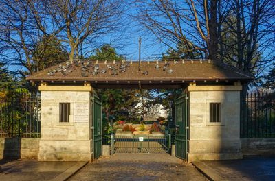 Der Park steht auf dem ehemaligen Gelände des La Petite Roquette Gefängnisses, das 1975 abgerissen wurde, mit zwei originalen Wachhäuschen am Eingang.