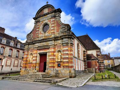 Die Église Saint-Nicolas de la Ferté-Vidame ist eine Barockkirche mit einer erhöhten Fassade aus Ziegeln und Stein, gekrönt von einem niedrigen Kuppelglockenturm nach palladianischen Prinzipien. Das Bauwerk besteht aus symmetrischen Proportionen und einem sorgfältig gestalteten Innenraum, der typisch für die französische Barockarchitektur des 17. Jahrhunderts ist.