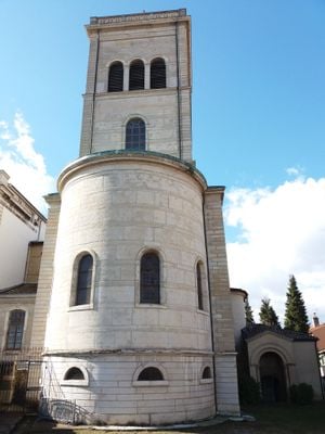 Die Sankt-Irenäus-Kirche steht auf den Höhen von Lyon mit einer Krypta aus dem 9. Jahrhundert und einem im 19. Jahrhundert rekonstruierten Oberteil.