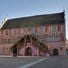 Der Klapperstein, ein schweres Steinbestrafungsgerät, bleibt als Erinnerung an mittelalterliche öffentliche Bestrafungspraktiken am Gebäude befestigt.