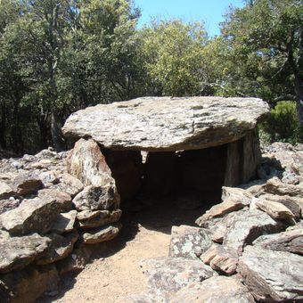Das megalithische Monument markiert die Kreuzung von drei Gemeinden - Saint-Michel-de-Llotes, Bouleternère und Casefabre - mit Blick auf das Boulès-Tal.