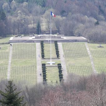 Der 1922 eröffnete Friedhof bewahrt die Überreste der Soldaten, die in den strategischen Schlachten am Hartmannswillerkopf während des Ersten Weltkriegs kämpften.