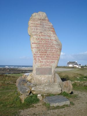 Der Granitmonolith trägt Inschriften von 1840, die den Untergang des französischen Schiffes Droits de l'Homme und seine Überlebenden gedenken.