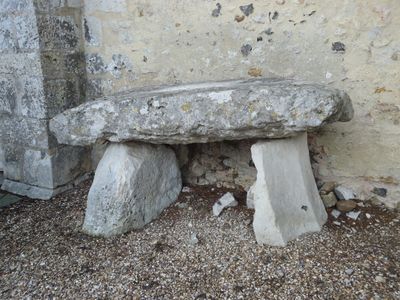 Dolmen von Aubevoye, vermutlich unechter Dolmen an der Église Saint-Georges in Aubevoye in der Normandie in Frankreich