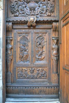 Leaves of the western portal of the Saint-Pierre collegiate church in Avignon, walnut leaves richly sculpted by Antoine Volard in 1551