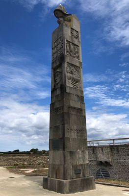 Das steinerne Denkmal steht am Rand der Klippe und zeigt auf Granitplatten die Namen der im Dienst Frankreichs gefallenen Seeleute.
