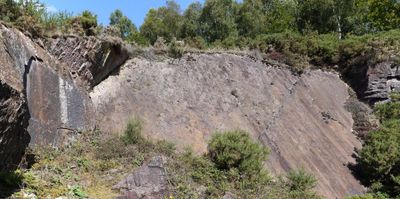 Die Butte von Tiot, mit einer Höhe von 190 Metern, enthält zwei Grabhügel, von denen einer eine zentrale megalithische Kammer aus Schieferplatten bewahrt.