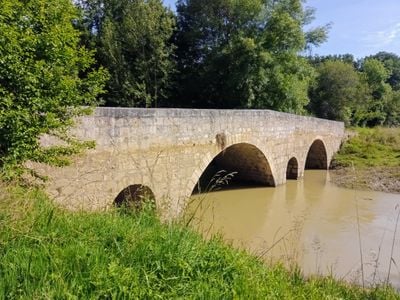 Das Bauwerk stellt eine der letzten romanischen Brücken aus dem Mittelalter dar, gekennzeichnet durch Ockersteinbau und unterschiedliche Bogengrößen.