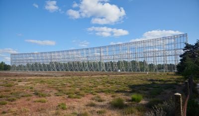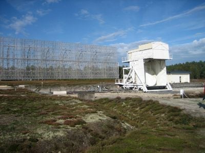 Der Radioheliograph in Nançay besteht aus 47 T-förmig angeordneten Antennen und erfasst 200 Radioaufnahmen der Sonne pro Sekunde.