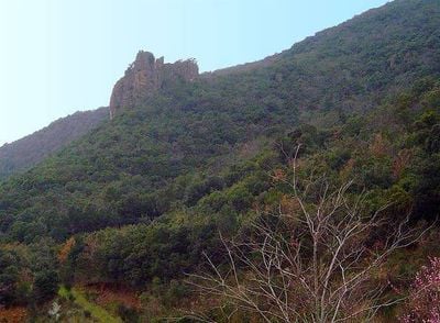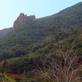 Der Aufstieg zur Burg erfordert eine anspruchsvolle Kletterpartie durch dichte Vegetation, da kein gepflegter Weg zu den Ruinen führt.