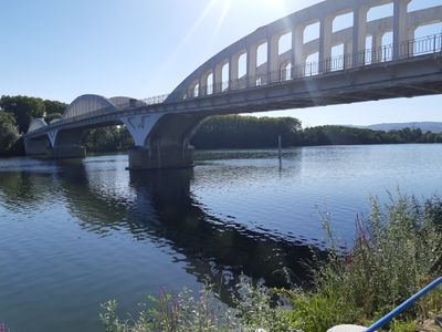 Die Saônebrücke Thoissey überspannt den Saône-Fluss und verbindet die Städte Thoissey und Dracé durch eine Betonkonstruktion für den Fahrzeugverkehr.