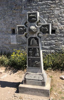Das keltische Kreuz steht auf einem Granitsockel mit einem charakteristischen Kreisring, der seine vier ausladenden Arme am Schnittpunkt verbindet.