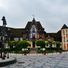Das Rathaus zeigt normannische Architekturelemente mit roten Backsteinfassaden, Steinmauern und dekorativen Holzpaneelen in seiner rechteckigen Struktur.