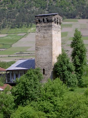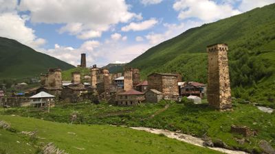 Die mittelalterlichen Steintürme von Svaneti, erbaut zwischen dem 9. und 13. Jahrhundert, repräsentieren die Verteidigungsarchitektur georgischer Berggemeinschaften.