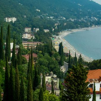 Gagra ist eine Küstenstadt am Schwarzen Meer in der Region Abchasien, die sich auf etwa 5 Kilometern entlang des Ufers erstreckt und am Fuß des Kaukasus-Gebirges in einer subtropischen Klimazone liegt. Die Bebauung besteht aus zahlreichen Sanatoriumsgebäuden, Parks mit Palmen und Zypressen sowie einer Strandpromenade, die die gesamte Länge der Siedlung durchzieht.