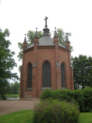 Die achteckige Ziegelkapelle steht am Fluss Kokemäenjoki, einen Kilometer östlich vom Zentrum Kokemäkis und umschließt einen mittelalterlichen Holzspeicher.