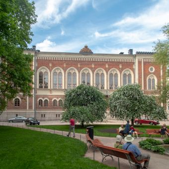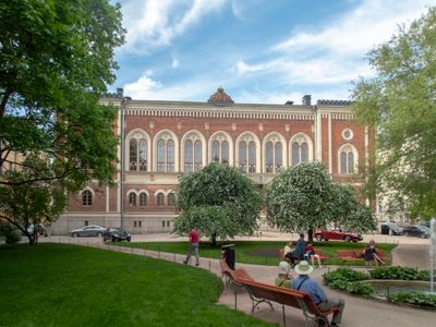 Das Finnische Ritterhaus zeigt neogotische Architektur mit einem großen Versammlungssaal von 464 Quadratmetern und 10 Metern Höhe.