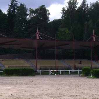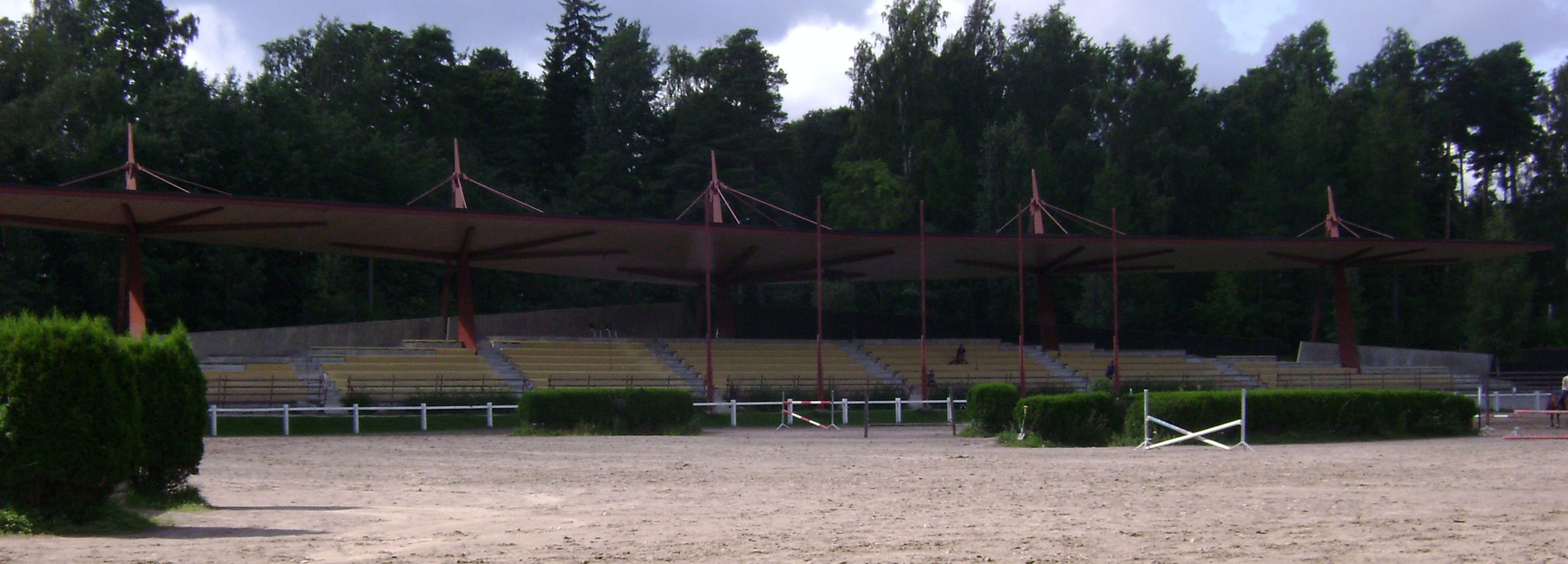 Das Reitstadion verfügt über mehrere Reitplätze und Halleneinrichtungen im Zentralpark Helsinki, umgeben von dichtem Fichtenwald.