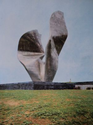 Die von Bildhauer Vojin Bakić entworfene Stahlkonstruktion maß 30 Meter in der Höhe und wies geometrische Formen mit Edelstahlplatten auf.