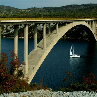 Die Brücke trägt die Nationalstraße D8 mit einer Fahrbahnbreite von 10,8 Metern und verbindet verschiedene Teile von Šibenik für lokalen und touristischen Verkehr.