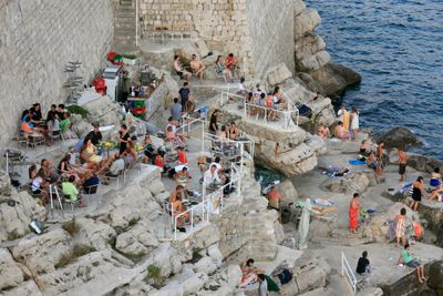 Buža Strand, Felsenstrand unter den Stadtmauern in Dubrovnik, Kroatien