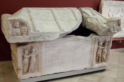 Archäologische Ausgrabungen an der Stätte brachten Sarkophage mit römischen mythologischen Figuren zutage, darunter Darstellungen von Amor und Psyche.