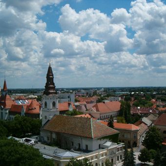Die reformierte Kirche steht am Szabadság tér 7 mit ihrem markanten Turm und verzierten Äußeren, das Renaissance-Architekturelemente und eine Basarstruktur aufweist.