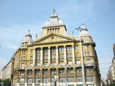 Der Palast wurde 1910 vom Architekten Ignác Alpár entworfen und ersetzte mehrere ältere Gebäude an dieser Stelle. Das Projekt war eine Neugestaltung eines bedeutenden Platzes im Zentrum Budapests zu Beginn des 20. Jahrhunderts.
