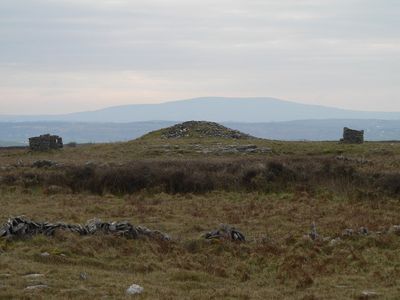 Der kreisförmige Kalksteinhügel misst 21 Meter im Durchmesser und erhebt sich 2,5 Meter auf dem Hügel in der Burren-Landschaft.