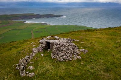 Doonmanagh, Wedge Tomb auf dem Townland Doonmanagh bei Annascaul, südlich von Lispole auf der Dingle-Halbinsel im County Kerry in Irland