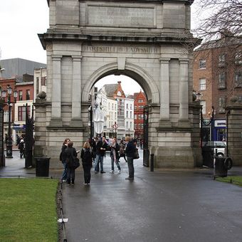 Der Füsiliere-Bogen ragt 9,9 Meter hoch am Grafton Street Eingang zum St Stephen's Green empor, erbaut aus Granit mit Kalkstein-Inschriften.
