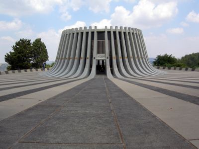 Das Memorial enthält eine ewige Flamme im Zentrum und bietet bei klarem Wetter Ausblicke bis zum Mittelmeer und zu den Bergen von Hebron.