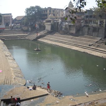 Banganga Tank ist ein steinumfasstes Wasserbecken in Walkeshwar im Süden von Mumbai. Die Stufen führen von allen vier Seiten zum Wasser hinunter, während kleine Tempel und Schreine die oberen Ebenen des Beckens säumen.